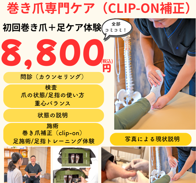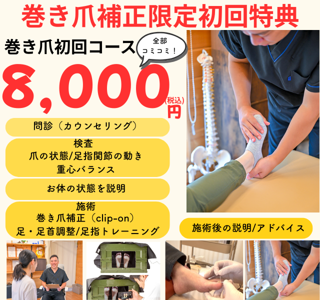 を行い、なぜ巻き爪になるのか?再発しないためにはどのようにしたらよいのか?まで考え施術していきます。