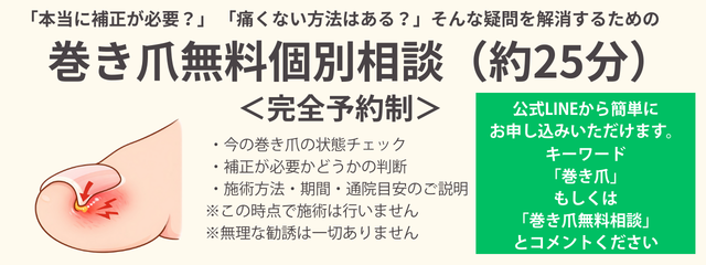 巻き爪の状態によっては、一定期間の補正や経過確認が必要になる場合があります。